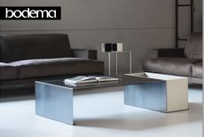 FLOYD Bodema set klub stolova se sastoji od dva elementa različite visine i dimenzija, od kojih veći ima ulogu centralnog stola dok se manji u prostoru može uklapati kao bočni stočić. Kod oba stola je glavna karakteristika je deo obložen tvrdom kožom, koji služi kao poslužavnik ili držač za novine.