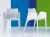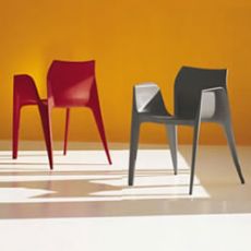 Stolica sa rukonaslonima od polipropilena, dostupna u beloj, svetlo sivoj, tamno sivoj i plavoj boji.