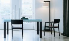 Jesse Big pravougaoni trpezarijski sto na razvlačenje od lakiranog kaljenog stakla.
