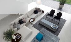 i u vise verzija ugaonih garnitura ili troseda sa lenjivcem ili terminalom. Umesto naslona za ledja je moguce postaviti biblioteku od 75, 100 ili 150 cm visine 33cm koja je otvorena na strani ledja.
